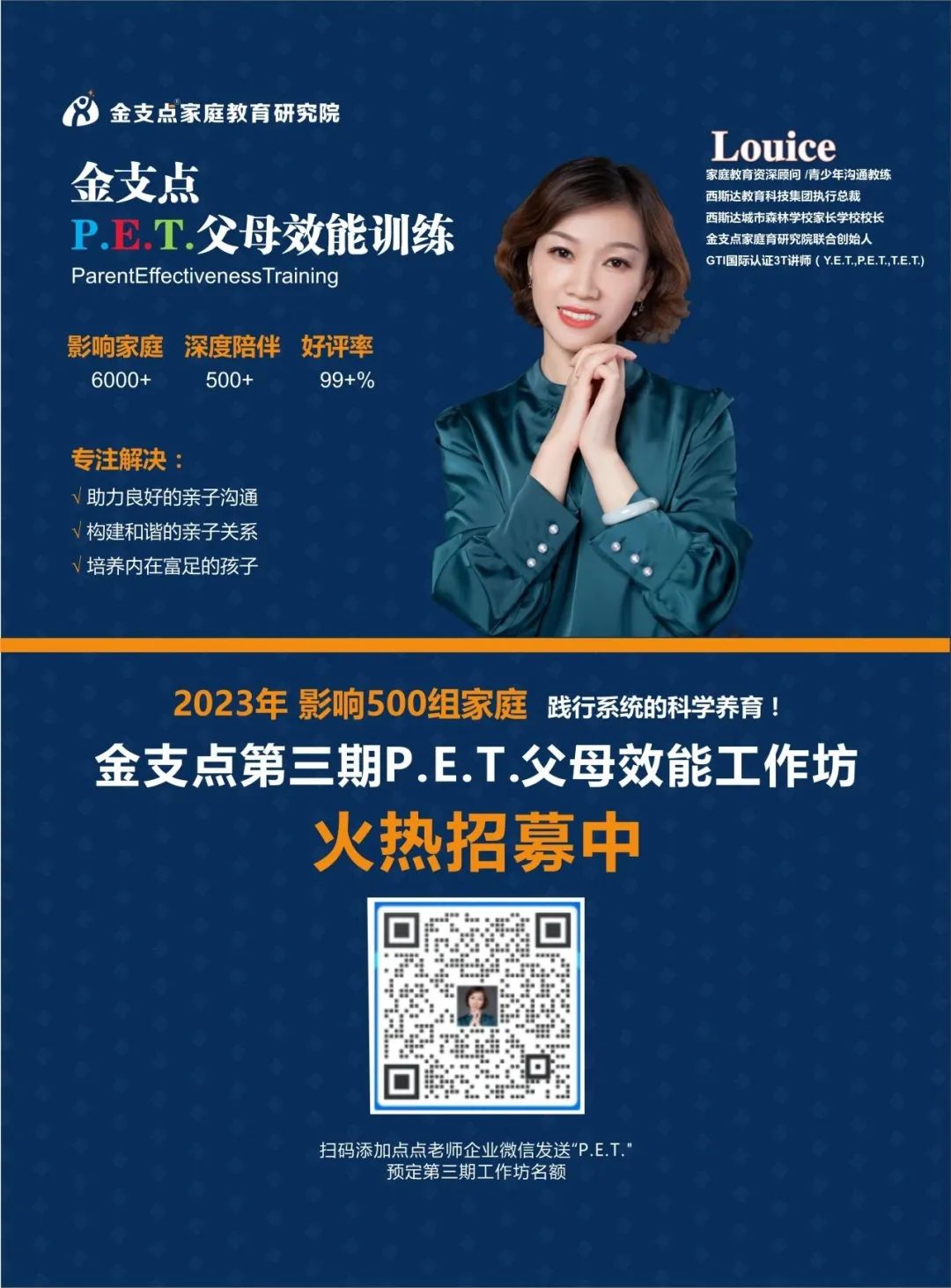 家校合力是“最完美的教育”。在尊龙凯时城市森林学校家长学校校长Louice的带领下,金支点P.E.T.父母效能训练工作坊吸引了越来越多的家庭 、父母 ,为他们提供了更多向内探索的路径 ,支持父母在养育中安住心,传播爱,。